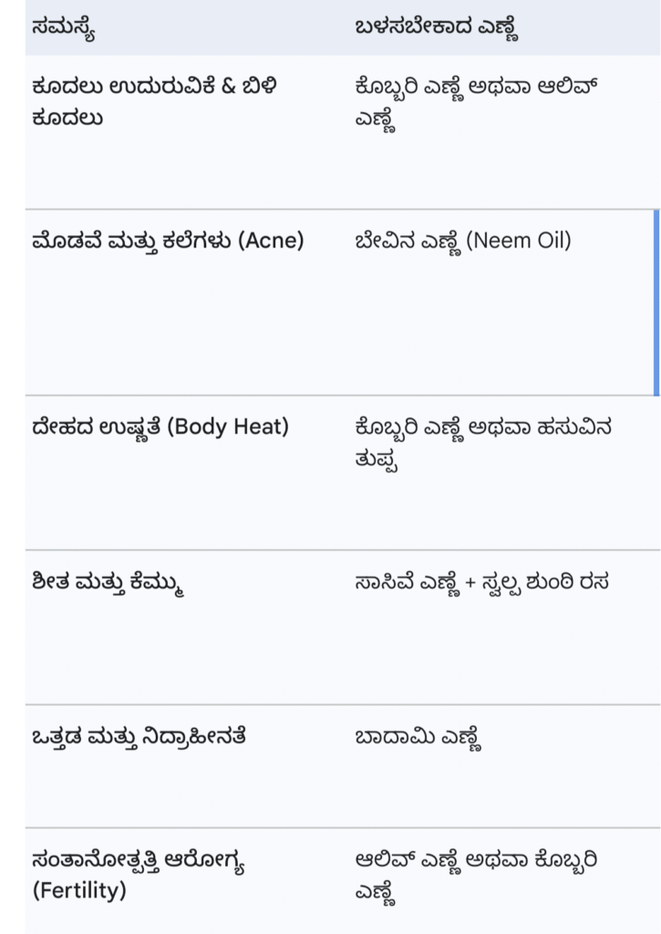 * ಅಲರ್ಜಿ: ಯಾವುದೇ ಹೊಸ ಎಣ್ಣೆಯನ್ನು ಬಳಸುವ ಮೊದಲು, ಅದನ್ನು ಕೈ ಮೇಲೆ ಹಚ್ಚಿ ಪರೀಕ್ಷಿಸಿ (Patch Test). ತುರಿಕೆ ಬಂದರೆ ಬಳಸಬೇಡಿ.