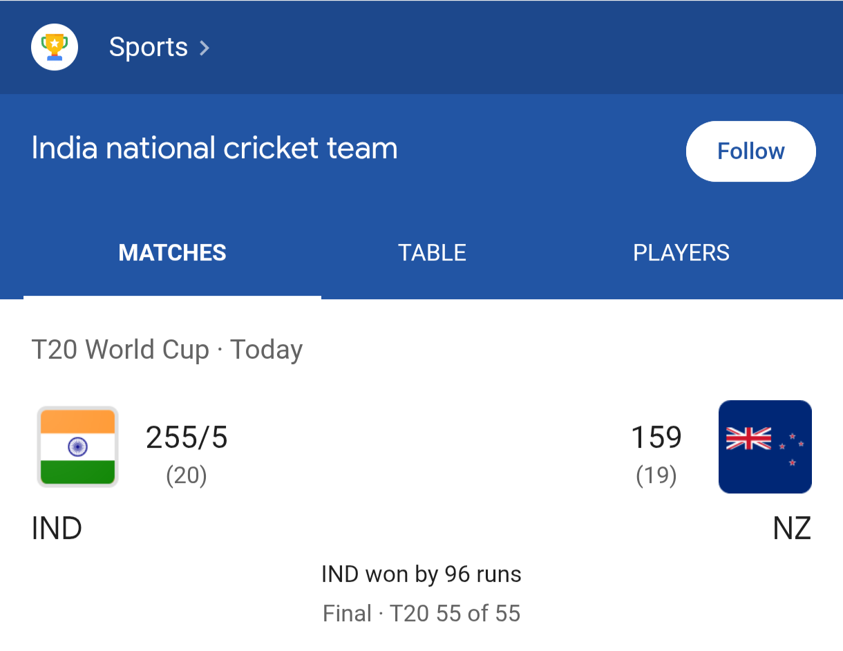 ಬೌಲಿಂಗ್‌ನಲ್ಲಿ ಭಾರತದ ಮೇಲುಗೈ256 ರನ್ ಗುರಿ ಬೆನ್ನಟ್ಟಿದ ನ್ಯೂಜಿಲೆಂಡ್ ತಂಡ ಒತ್ತಡಕ್ಕೆ ಒಳಗಾಗಿ 19 ಓವರ್‌ಗಳಲ್ಲಿ 159 ರನ್‌ಗೆ ಆಲೌಟ್ ಆಯಿತು.ಭಾರತದ ಬೌಲಿಂಗ್‌ನಲ್ಲಿ:Jasprit Bumrah – ಪ್ರಮುಖ ವಿಕೆಟ್‌ಗಳುAxar Patel – ಪ್ರಮುಖ ಸ್ಪೆಲ್ನ್ಯೂಜಿಲೆಂಡ್ ಪರವಾಗಿ Tim Seifert 52 ರನ್ ಗಳಿಸಿದರೂ ತಂಡವನ್ನು ಗೆಲುವಿನತ್ತ ಕೊಂಡೊಯ್ಯಲು ಸಾಧ್ಯವಾಗಲಿಲ್ಲ.