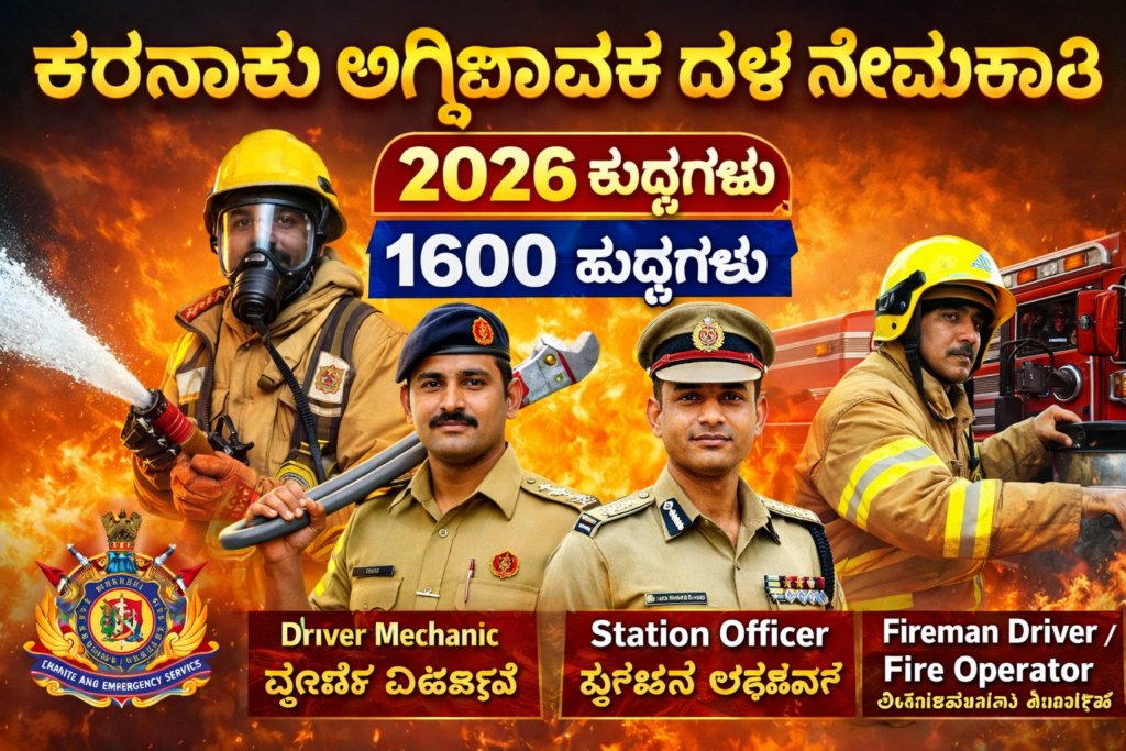 ಅಗ್ನಿಶಾಮಕ ದಳ ನೇಮಕಾತಿ 2026 Karnataka Fire and Emergency Services (ಕರ್ನಾಟಕ ಅಗ್ನಿಶಾಮಕ ಮತ್ತು ತುರ್ತು ಸೇವೆಗಳ ಇಲಾಖೆ) ನಲ್ಲಿ 2026 ನೇಮಕಾತಿ.